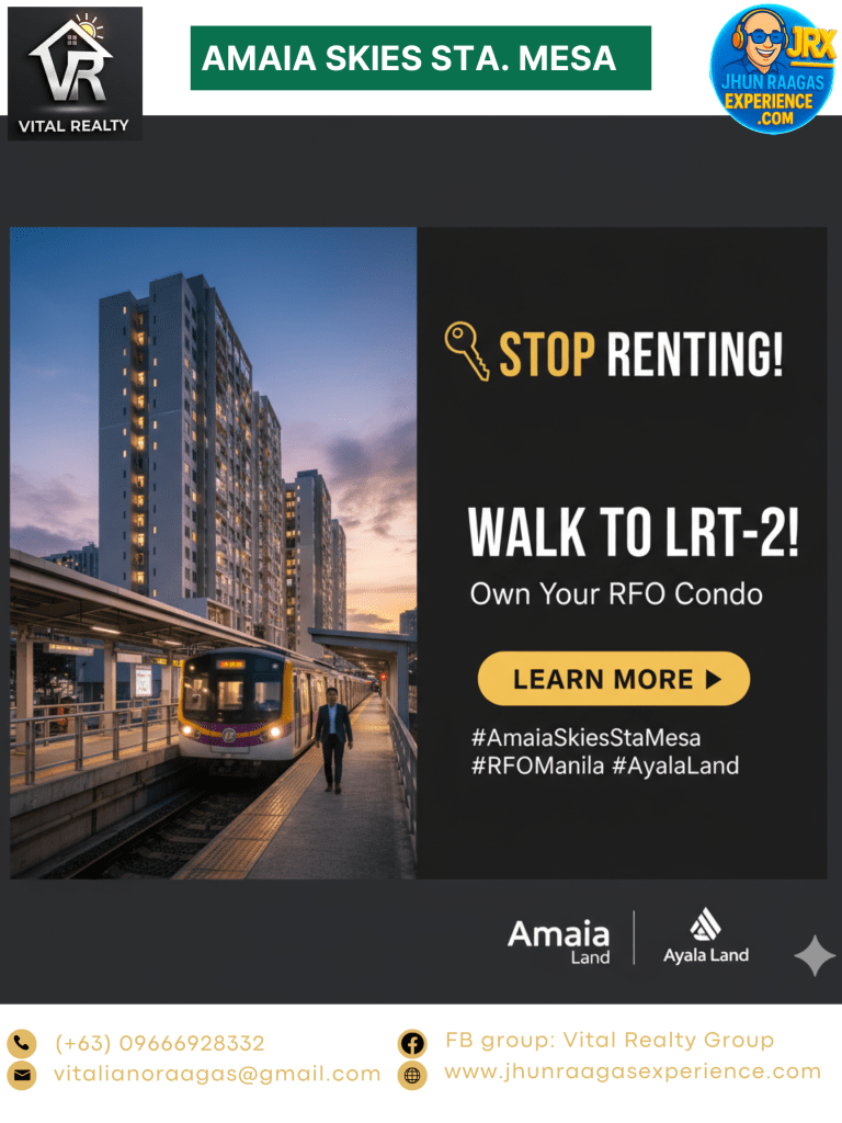 Amaia Skies Sta. Mesa is a two-tower, high-rise condominium development by Amaia Land, an Ayala Land company, located at the corner of Valenzuela St. and V. Mapa Blvd. in Sta. Mesa, Manila. Strategically positioned in the heart of the city, this ready-for-occupancy project offers affordable, modern urban living with convenient access to major cities like Quezon City, Mandaluyong, San Juan, and business districts in Makati and Ortigas. The development is bounded by four roads—V. Mapa Blvd., Valenzuela St., Atis St., and First St.—and is just 850 meters from the LRT-2 V. Mapa Station, ensuring excellent connectivity via public transportation.